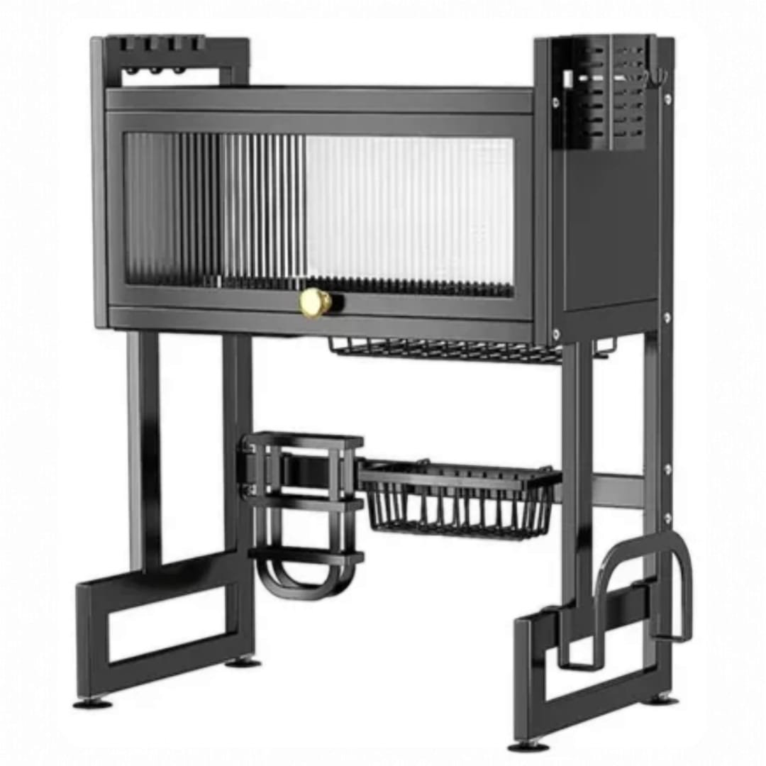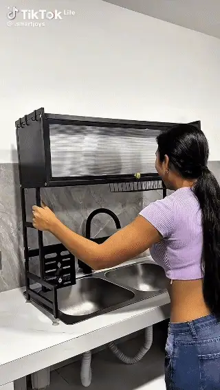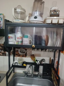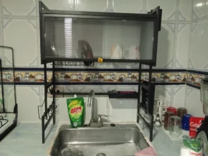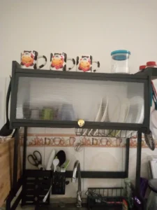 "¡Me encantó! Antes tenía todo regado sobre la mesada y ahora todo queda organizado y limpio. La tapa evita que caiga polvo o grasa de la cocina sobre los platos. es bastante resistente."