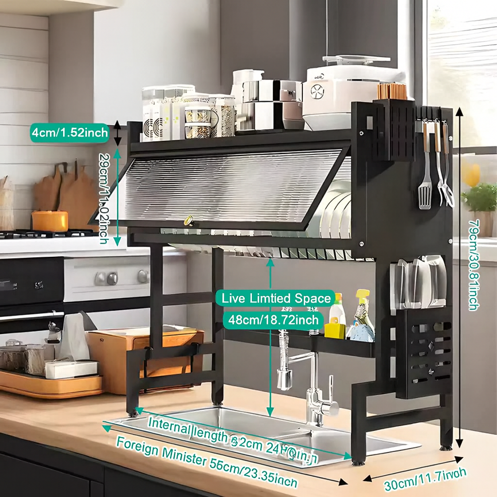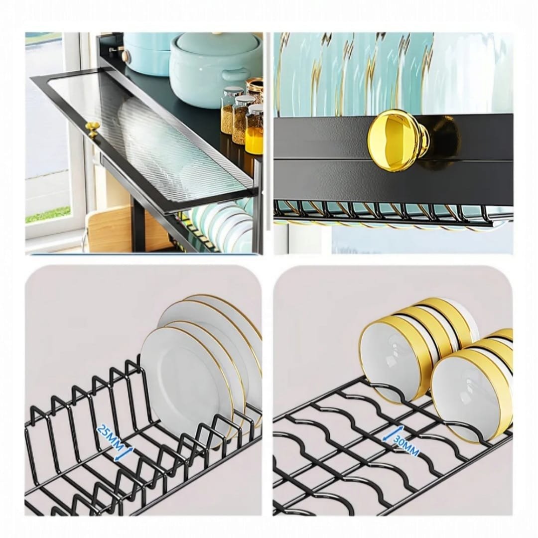 Con 65 cm de ancho, sostiene platos grandes, tazas, cubiertos y hasta tablas de cortar. Su estructura vertical aprovecha la altura y libera tu encimera. Es ideal para cocinas pequeñas, familias grandes o para quienes buscan una cocina organizada con estilo.