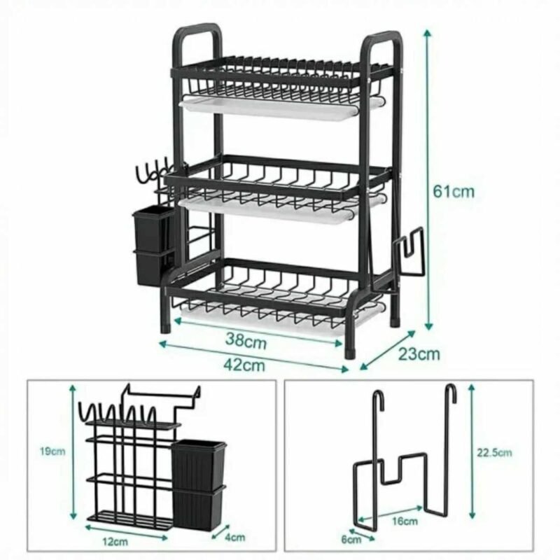 ✅ Diseño de 3 niveles: Maximiza el espacio vertical, permitiéndote organizar platos, vasos, cubiertos y más sin ocupar mucho espacio en tu encimera.