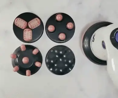 Cabezal eliminador de toxinas: Simula el masaje de la palma de la mano se utiliza en  piernas y glúteos.
