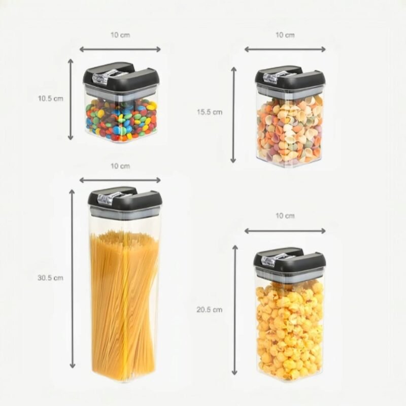 Gracias a su diseño transparente y apilable, identificás fácilmente lo que necesitas y ganás espacio en segundos. Ideal para almacenar arroz, café, lentejas, azúcar y mucho más. Simplificá tu vida en la cocina con orden, eficiencia y estilo.